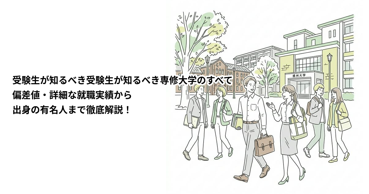 本記事では、専修大学の就職実績を実名企業とともに徹底公開。アイフル社長・福田光秀氏などのビジネスリーダー、俳優・仲村トオル氏や大沢たかお氏、2019年JリーグMVP・仲川輝人選手まで、卒業生の活躍をデータで解き明かします。